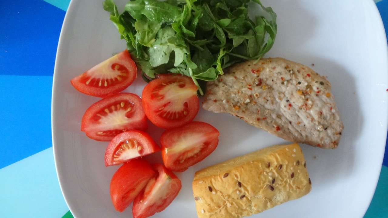 4. Morčací steak so zeleninou a pečivom