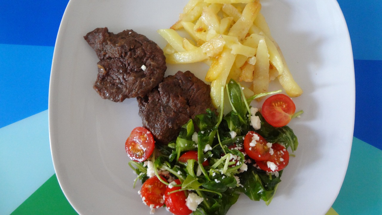 7. Hovädzí steak s hranolkami a šalátom